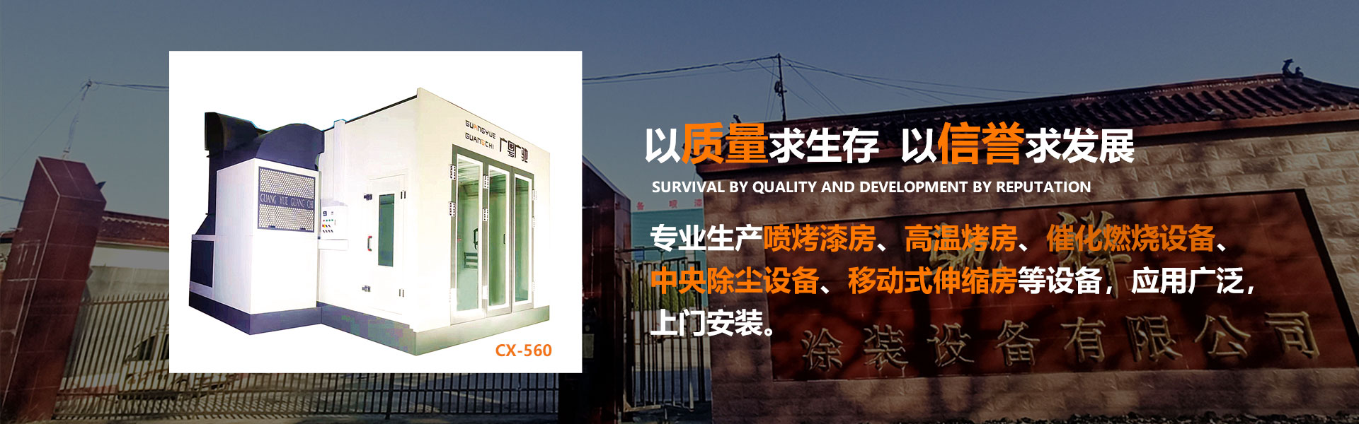 公司主要生產(chǎn)汽車噴烤漆房、家具噴烤漆房、高溫烤房、移動(dòng)式伸縮房、涂裝設(shè)備、光氧廢氣處理設(shè)備、粉塵一體化處理設(shè)備等環(huán)保設(shè)備,公司具有多年的豐富的實(shí)踐經(jīng)驗(yàn),獨(dú)特的技術(shù)和專業(yè)化的生產(chǎn)設(shè)備,完成了眾多技術(shù)含量高,質(zhì)量可靠,效果優(yōu)異的工程,也可根據(jù)用戶需要進(jìn)行更加符合客戶要求的改造安裝。
